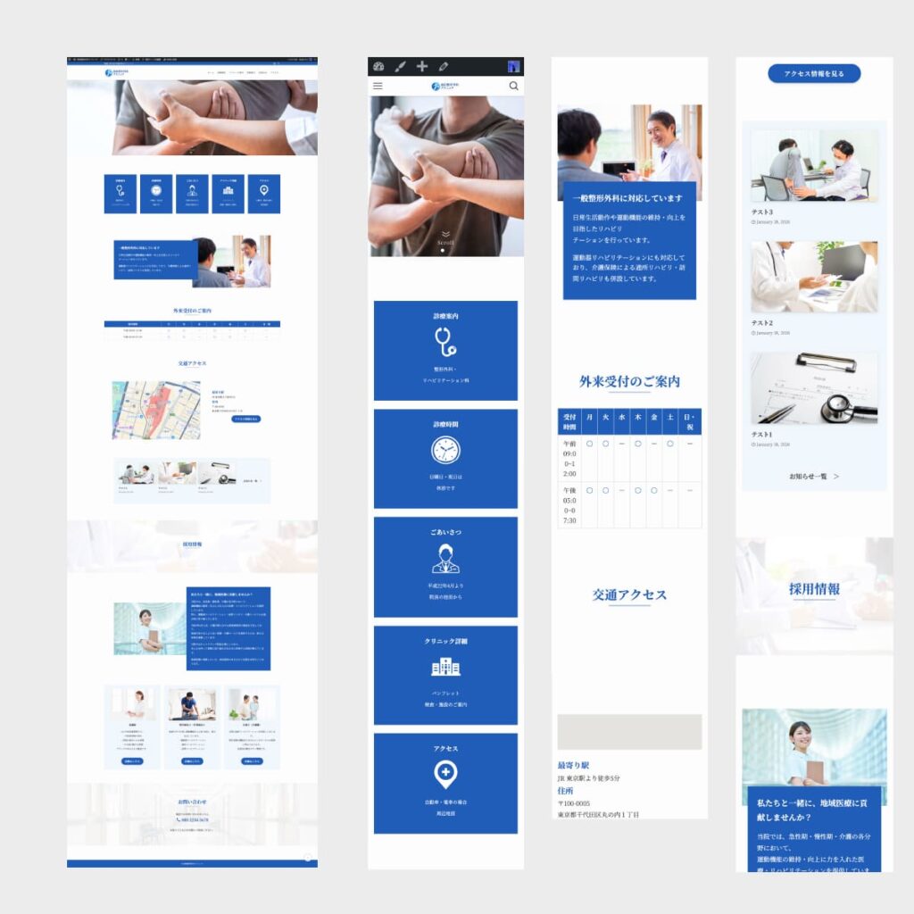 施術や診療案内、医師紹介、アクセス情報、予約導線を適切に配置し、